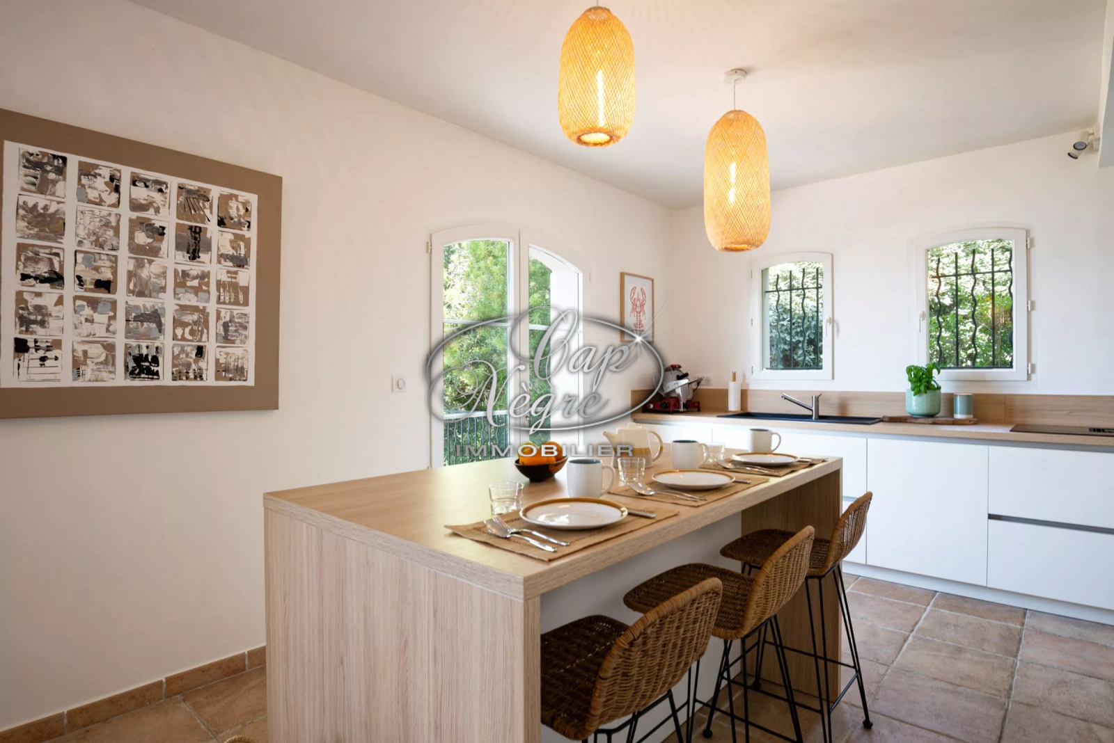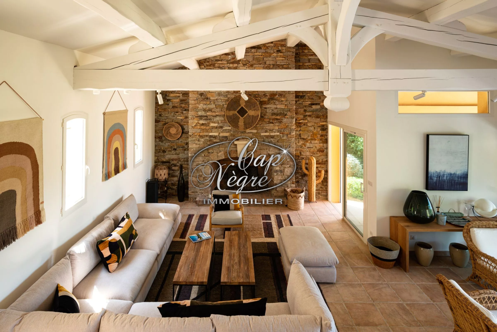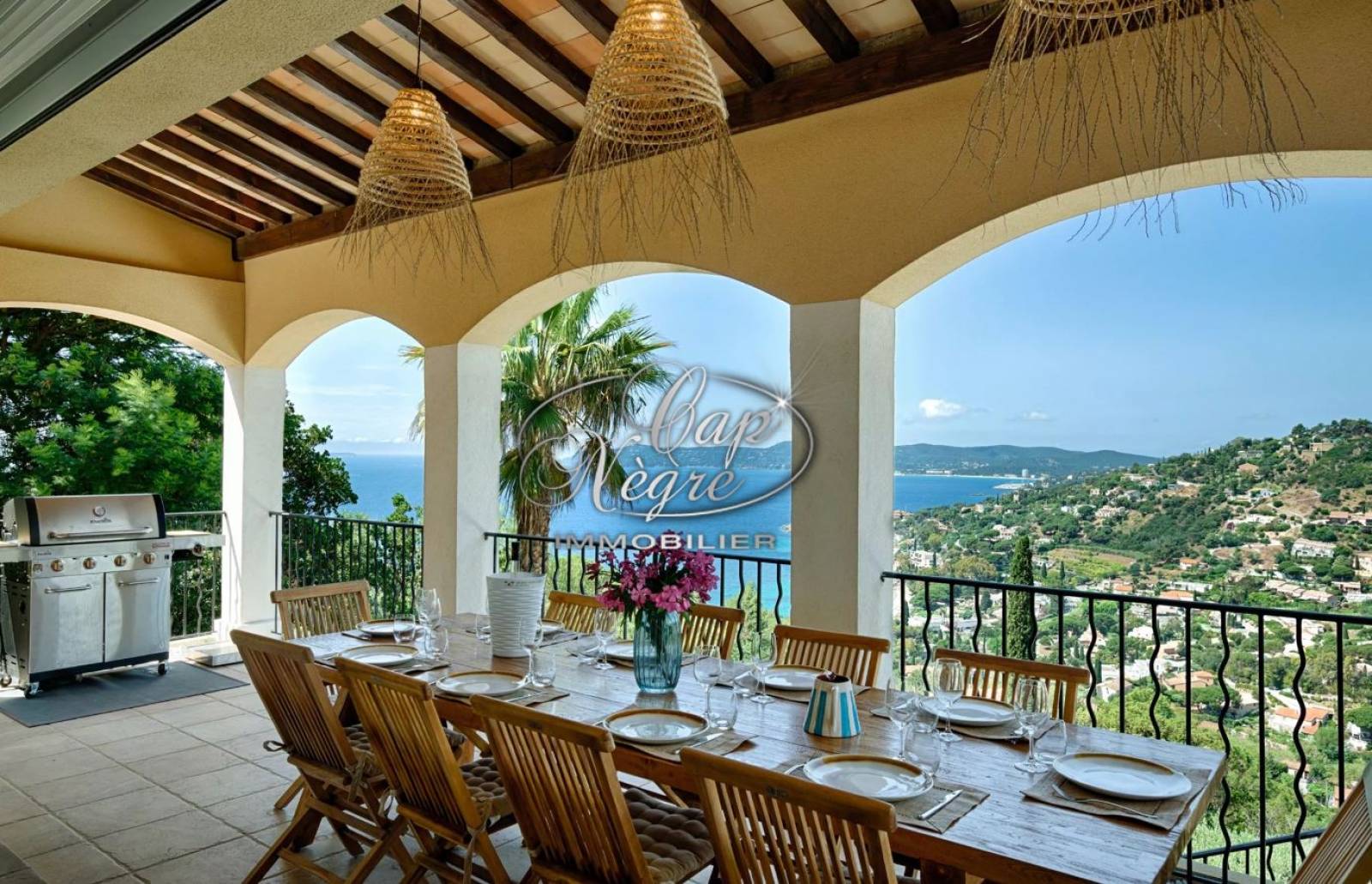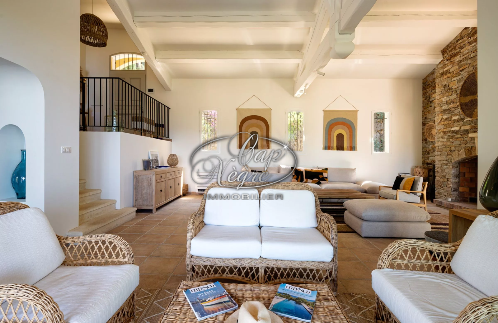 Ne laissez pas cette opportunité unique passer entre vos doigts. Cette maison d'architecte provençale alliant tradition et modernité, avec sa vue panoramique imprenable et son aménagement clé en main, est une occasion rare sur le marché immobilier. Bienvenue dans cette magnifique maison d'architecte, une perle provençale mariée à la véritable modernité, offrant une vue à couper le souffle sur la mer et les collines préservées. Vous découvrez ici un coin de paradis, avec une vue panoramique sur la mer, les îles, Le Lavandou, Bormes-les-Mimosas et le majestueux Cap Bénat.