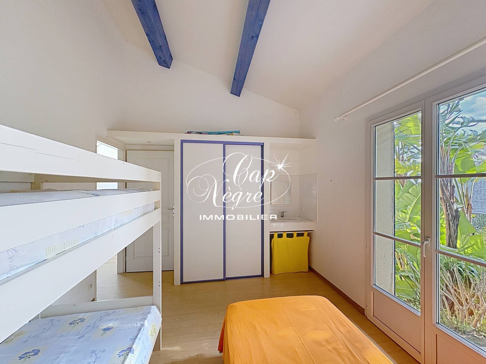 Offrant une vue mer imprenable, cette villa de 154m² T6 de caractère séduit par son charme intemporel et son cadre exceptionnel. Édifiée sur un terrain arboré de 1 030 m², elle profite d’un environnement calme et préservé, où le chant des cigales accompagne les journées ensoleillées. Son jardin, planté d’essences méditerranéennes, encadre une vaste piscine et un terrain de pétanque qui invitent à la détente et à la contemplation du panorama maritime.