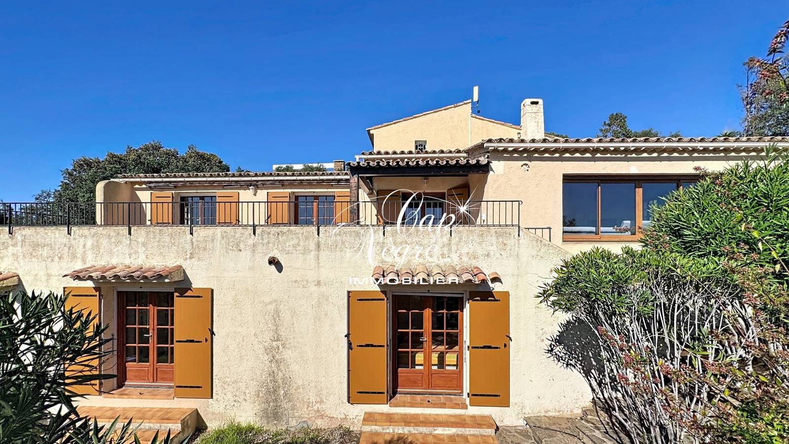 Nichée au sein d’un domaine privé, cette charmante villa d'architecte d’environ 200 m² séduit par son emplacement, ses volumes généreux et sa superbe vue mer. Édifiée sur un terrain paysager d’environ 4 300 m², agrémenté d’essences méditerranéennes, elle bénéficie d’une intimité totale et d’une belle exposition au sud.