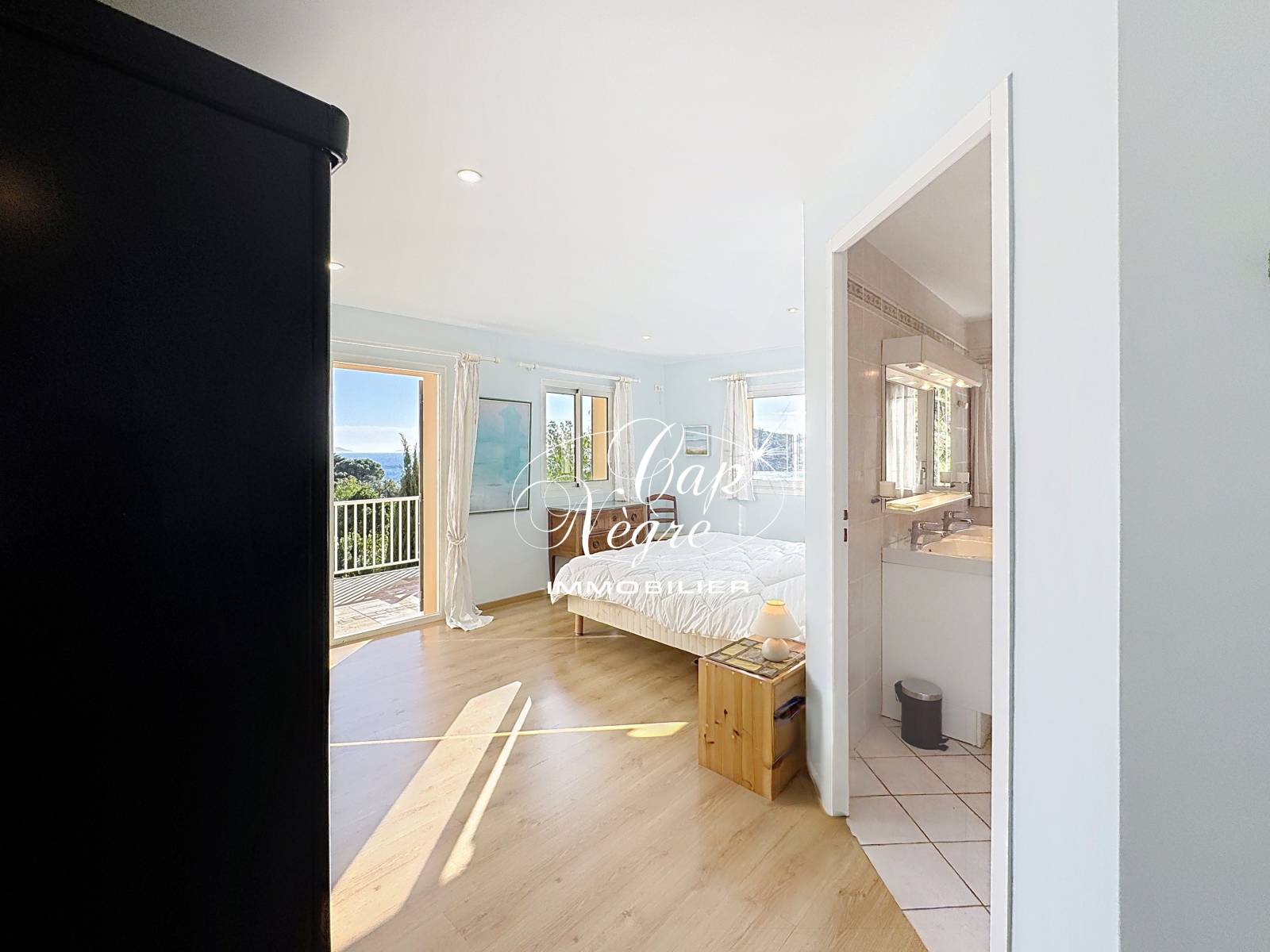 Cette élégante villa d'environ 300 m² bénéficie d'un emplacement exceptionnel, à proximité de la mer, située en partie basse de la RD. Édifiée sur une parcelle de 1 019 m², elle profite d'une belle ouverture sur la mer et séduit par ses volumes, son emplacement et sa vue.