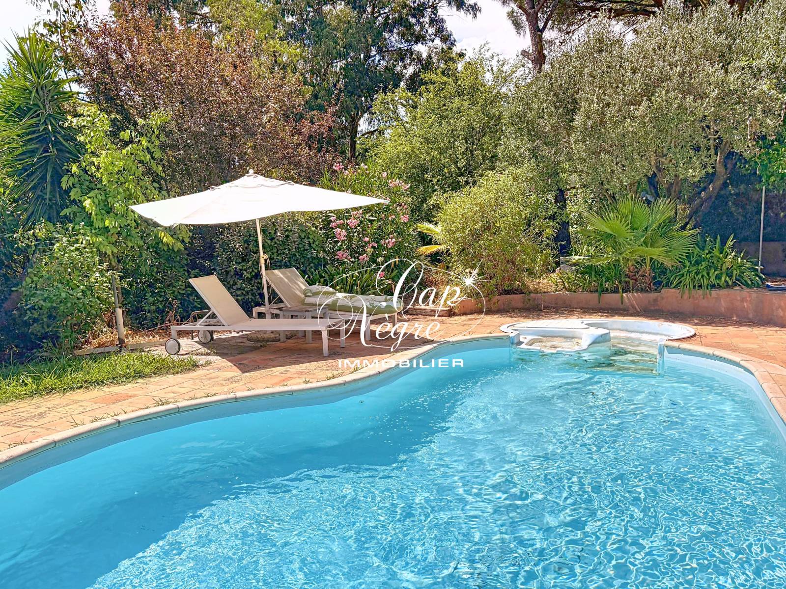 À vendre, maison de caractère T7 située dans le secteur recherché de Gigaro, offrant un cadre de vie privilégié sur un terrain de 2 000 m². D'une superficie d’environ 225 m², elle se compose de deux niveaux indépendants. Le rez-de-jardin, entièrement aménagé, comprend un vaste salon lumineux avec cuisine ouverte, trois chambres, deux salles de bains ainsi qu’une loggia. Cet espace s’ouvre sur une terrasse agréable avec vue sur le jardin et la piscine.